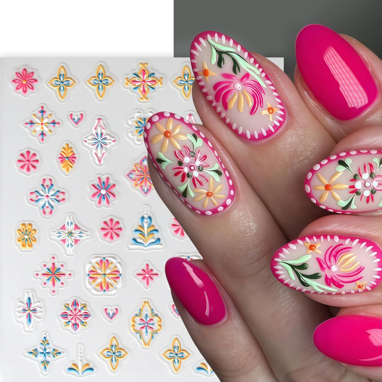 - Usage Safety:Embossed flowers nail art stickers made of high quality materials, not limited to any skin, and safe to use. well worked with gel nail, acrylic nail, natural nail, false nail, nail tips and more