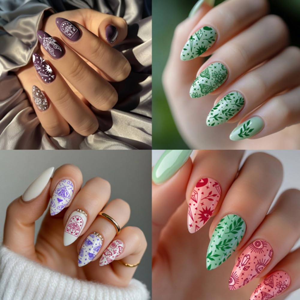 - Easy to Use: You can transfer design template from plate to your nail using professional nail stamping polish gel, and can also be used to reverse stamping, just transfer image to stamper and fill outlines with different varnishes or paint using a brush or dispensing tool, nail stamping plates set creating your unique decals or stickers