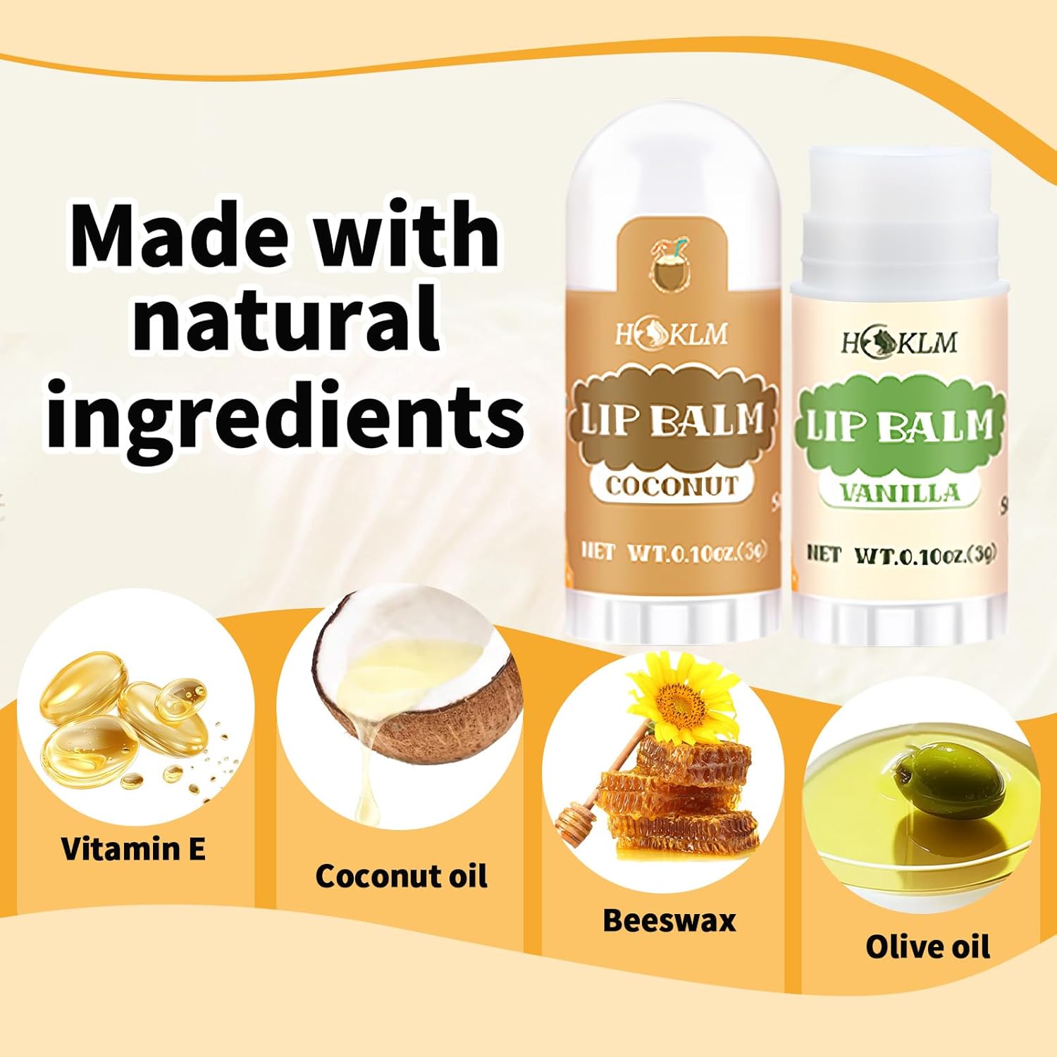 - Hydrating & Restorative Lip Treatment - Our lip balm set delivers lasting moisture while actively repairing lips. Enriched with Vitamin E and coconut oil, the formula deeply hydrates and renews dry, damaged tissue for visibly healthier lips