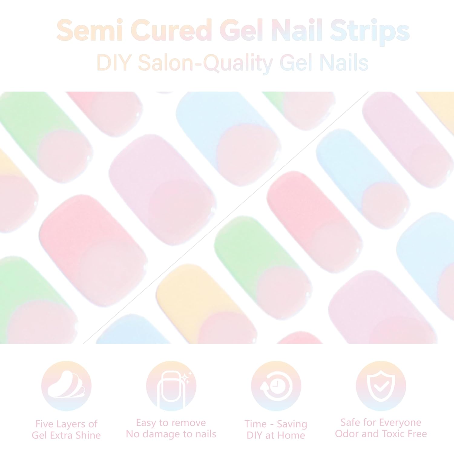 Semi Cured Gel Nail Strips-Semi Cured Gel Nail Art Wraps Back to School Nail Stickers At-Home Manicure Kit,14 Days Wear, Salon-Grade Works with Any UV/LED Lamps(Colorful Spring)