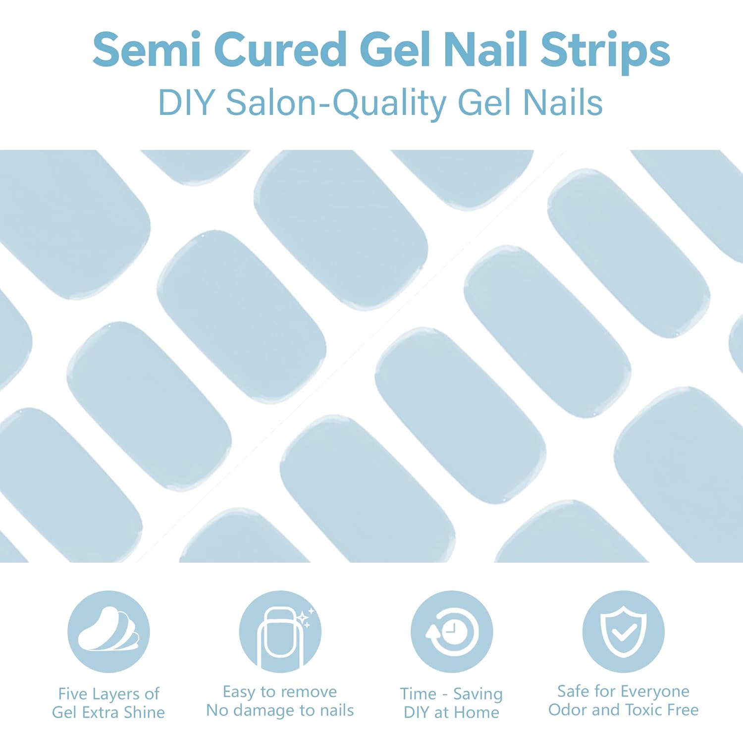 Semi Cured Gel Nail Strips-Natural Looking False Nails, Glue on Nails Full Cover for Daily Use & Homemakers Works with Any UV/LED Lamps(Sky Blue)