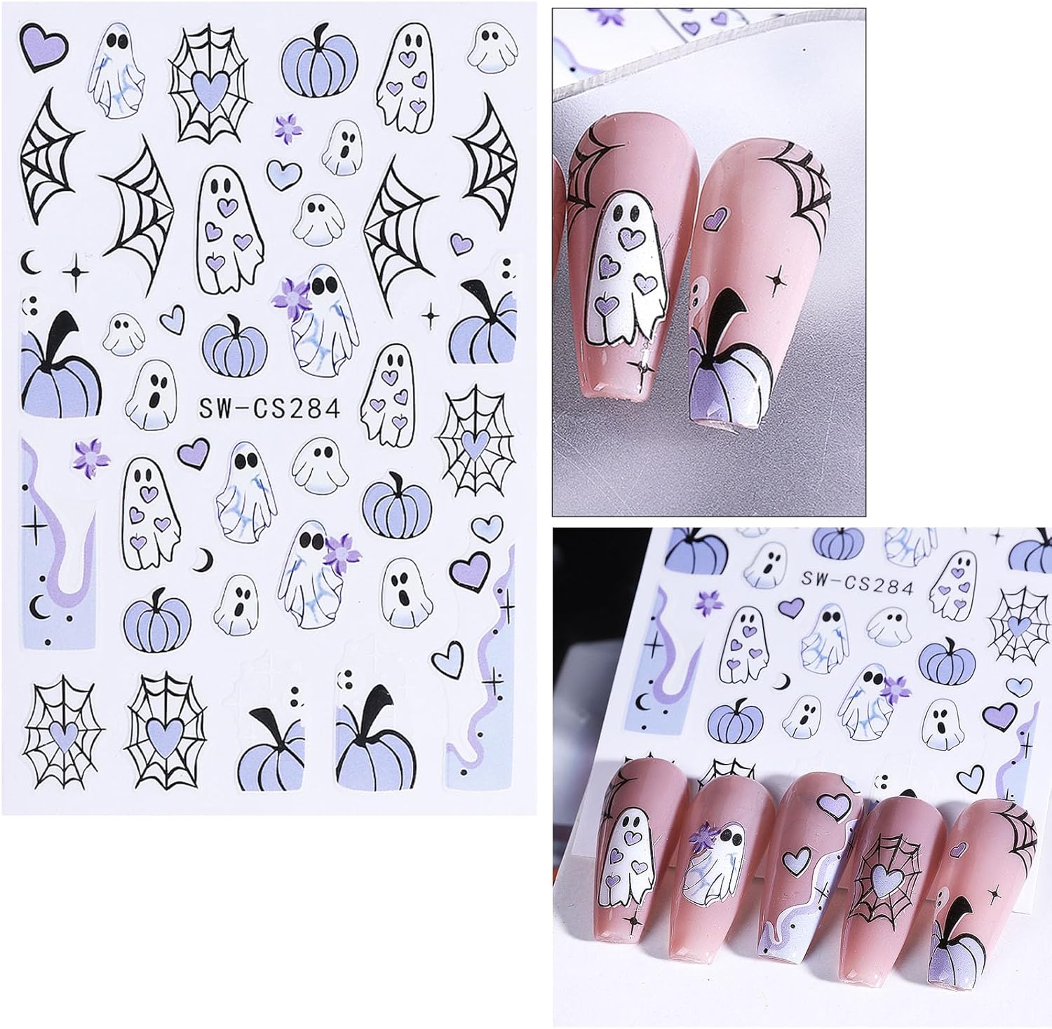 Halloween Nail Art Stickers for Nail Art Cute Pumpkin Nail Stickers Self Adhesive Nail Design Ghost Spider Web Bat Flower Heart Cat Nail Decals for Women Girls DIY Manicure 8 Sheets