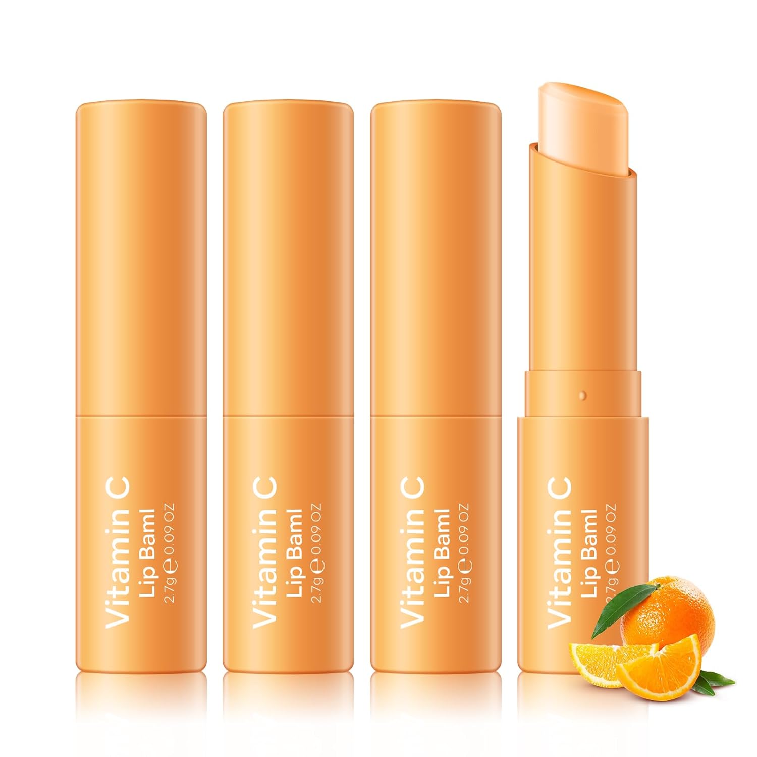KYDA 3 Pcs Vitamin C Lip Balm, Moisturizing Lips Balm Stick for Dry Cracked Lips, Deep Hydrating Tinted Lip Balm, Reduce Fine Lines, Daily Lip Moisturizer with Orange Vitamin C, Colorless Finish