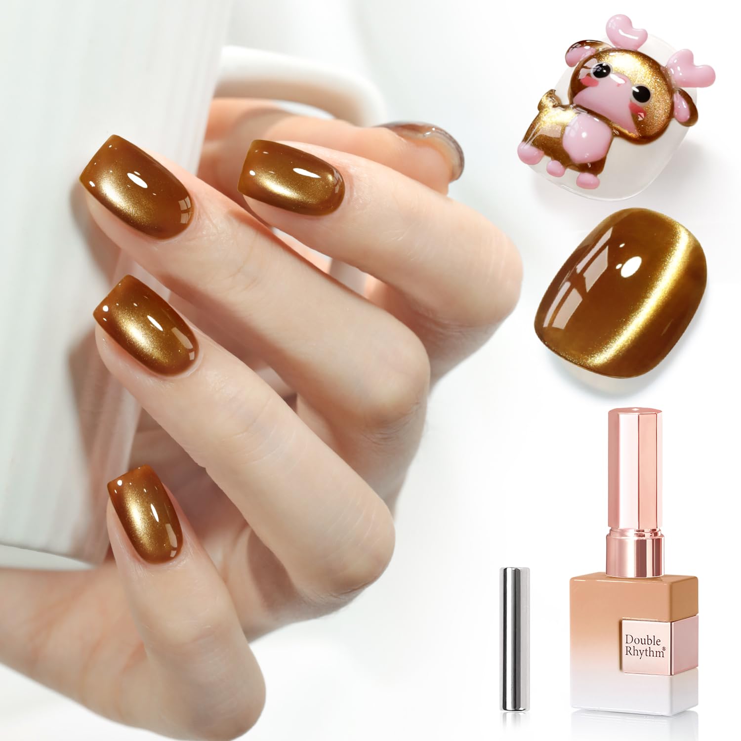 Double Rhythm 0.5 Oz Cat Eye Gel Polish with Magnet Same Color Same Bottle Holographic Glitter Shimmer Translucent Color Salon 15 ML Magnetic Nail Art (Olive Brown-MC1278)