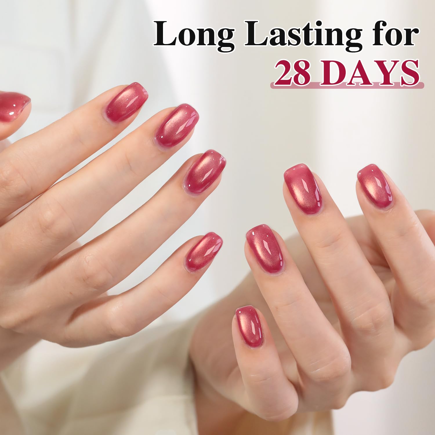 - Cat Eye Gel Nail Polish : Double Rhythm cat eye gel nail polish kit includes 1 color 15ml / 0.5 fl.oz gel nail polish.Come with same color gel with same color bottle and magnet .The cat eye gel can be combined with different bacse colors arbitrarily, you can get different colors nail art.You can use different base coat to creat different sytles.