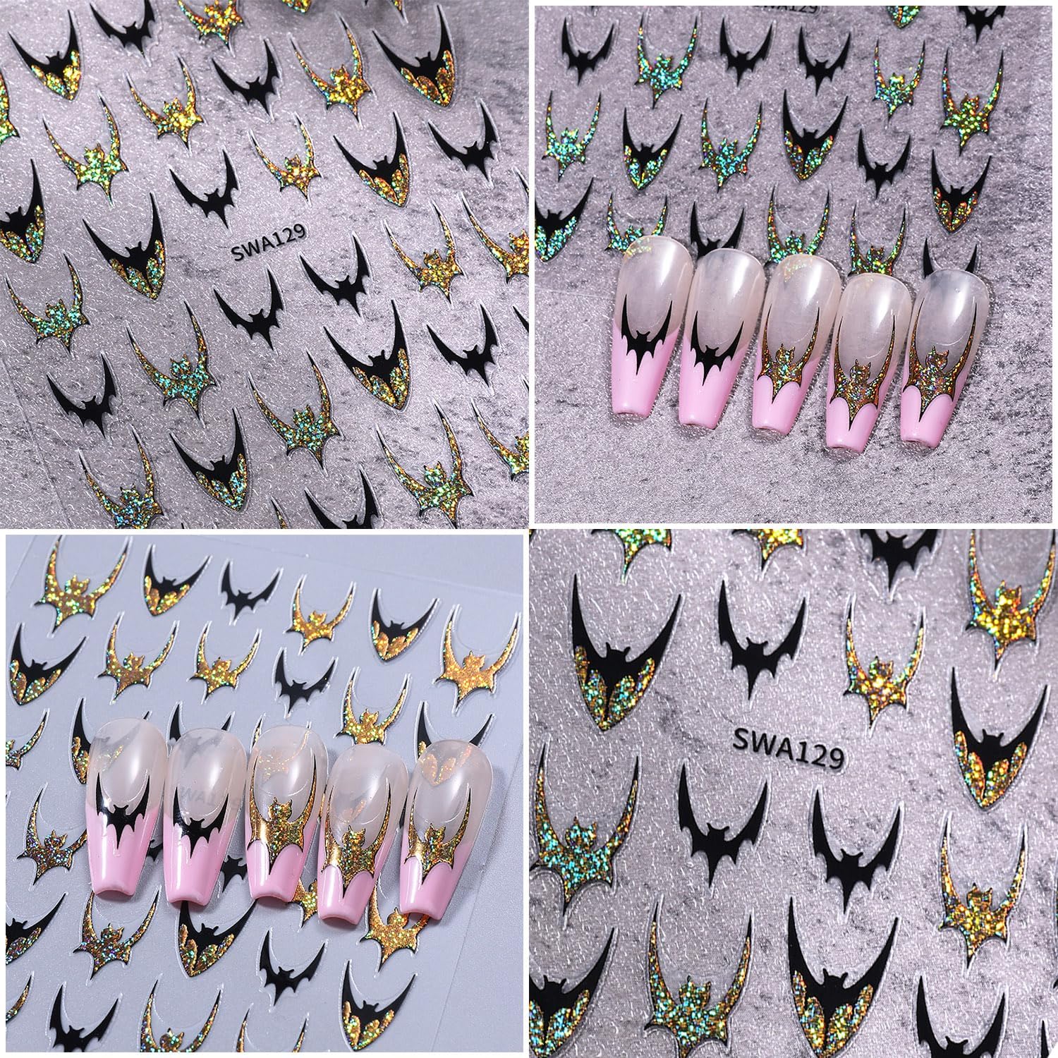 - Easy to Use: This gold bat nail design stickers is self-adhesive and requires no glue, Just use tweezers to peel off nail stickers and stick nail decals on your nail. You can also use top coat to cover to make the beautiful stickers last longer